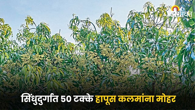 Sindhudurg News : सिंधुदुर्ग जिल्ह्यातील किनारपट्टी तालुक्यातील ५० टक्क्यांहून अधिक हापूस कलमांना मोहर आला असून, उर्वरित कलमांना मोहर येण्यासाठी सध्या अनुकूल वातावरण आहे. त्यामुळे पुढील दहा ते बारा दिवसांत ८० टक्के कलमांना मोहर येण्याची शक्यता आहे.