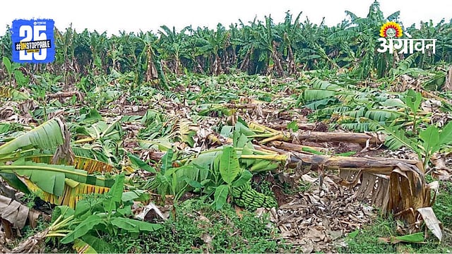 Karmala News: वादळी वारा व पावसाने करमाळ्यातील चिखलठाण परिसरातील केळीबागांचे मोठे नुकसान झाले आहे. अनेक बागांमध्ये पाणी साचल्याने केळीच्या उत्पादनावर त्याचा परिणाम होणार असून, शेतकऱ्यांच्या झालेल्या नुकसानीचे पंचनामे करून तातडीने भरपाई मिळावी, भरपाई रकमेमध्ये वाढ करावी, अशी मागणी शेतकऱ्यांकडून केली जात आहे.