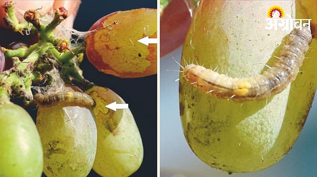 ही कीड द्राक्ष घडाच्या आतमध्ये राहून मणी खाते. त्यामुळे या किडीचा प्रादुर्भाव लवकर लक्षात येत नाही.