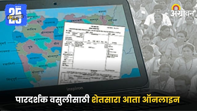 ताज्या कृषी घडामोडींसाठी फेसबुक, ट्विटर, इन्स्टाग्राम , टेलिग्रामवर आणि व्हॉट्सॲप आम्हाला फॉलो करा. तसेच, ॲग्रोवनच्या यूट्यूब चॅनेलला आजच सबस्क्राइब करा.