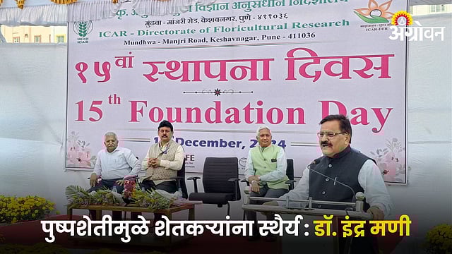 पुष्पसंशोधन संचालनालयाच्या १५ व्या वर्धापन दिनानिमित्त मंगळवारी (ता.१०) मांजरी (हडपसर) येथील मुख्यालयात आयोजित कार्यक्रमात डॉ. इंद्र मणी बोलत होते. या वेळी राष्ट्रीय कांदा लसूण संशोधन संचालनालयाचे संचालक डॉ. विजय महाजन, राष्ट्रीय जैविक ताण संशोधन संचालनालयाचे संचालक डॉ. के. स्वामी रेड्डी, अटारीचे संचालक डॉ. ए. के. रॉय, पुष्पसंशोधन संचालनालयाचे संचालक डॉ. के. व्ही. प्रसाद आदी मान्यवर उपस्थित होते.