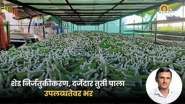 टाकळगव्हाण (ता. कळमनुरी, जि. हिंगोली) येथील उच्च शिक्षित श्रीधर बळवंतराव शृंगारे यांनी दीर्घ अनुभवातून तुती रेशीम कोष उत्पादन व्यवसायात जम बसवला आहे. काटेकोर व्यवस्थापनातून मागील १४ वर्षांपासून ते दर्जेदार रेशीम कोष उत्पादन घेत आहेत. यातून त्यांना शाश्वत उत्पन्न मिळत आहे. दर्जेदार रेशीम कोष उत्पादनासाठी तुतीचा उत्तम प्रतीचा पाला अत्यंत महत्त्वपूर्ण आहे. त्यानुसार रेशीम कीटकांना दर्जेदार पाला उपलब्ध करण्यावर भर दिला जातो. तुषार संचाद्वारे पाणी दिल्यामुळे तुतीची पाने स्वच्छ होण्यास मदत मिळते, असे श्रीधर शृंगारे सांगतात.