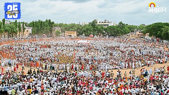 Solapur News: जगद्गुरू संत तुकाराम महाराज पालखी सोहळ्याने पुणे जिल्ह्यातील सराटी येथून मंगळवारी (ता.१) सोलापूर जिल्ह्यात प्रवेश केला. जिल्हाधिकारी कुमार आशीर्वाद यांनी पालखी सोहळ्याचे स्वागत केले. जिल्हा प्रवेशानंतर अकलूज येथील सदाशिवराव माने विद्यालयाच्या प्रांगणात नेत्रदीपक गोल रिंगण पार पडले, या सोहळ्याने उपस्थितांच्या डोळ्यांचे जणू पारणे फिटले.