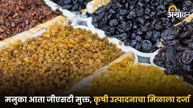 हळद, गुळ याप्रमाणेच मनुके कृषी उत्पादन असल्याने त्याला वस्तू व सेवा करातून वगळण्याची शिफारस मंत्री आदिती तटकरे यांनी केली होती. त्यास परिषदेत मान्यता देण्यात आल्याने या आधी ५ टक्के वस्तू व सेवा कर (जीएसटी) असणारे मनुके आता करमुक्त झाले आहेत.