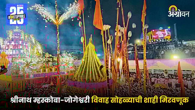 Purandar News: श्री क्षेत्र वीर (ता. पुरंदर) येथे माघ पौर्णिमेच्या मुहूर्तावर ‘सवाई सर्जाचा’ जयघोष करत श्रीनाथ म्हस्कोबांचा व देवी जोगेश्वरी यांचा विवाह सोहळा शाही थाटात पार पडला. या वेळी फटाक्यांची आतषबाजी करण्यात आली.