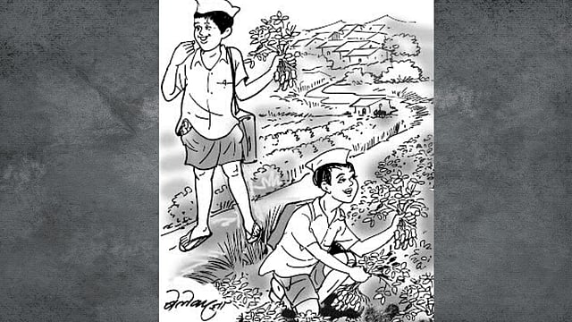 पेरणी नंतर दीड महिन्याने भुईमूगाची फुले झडतात आणि आऱ्या फुटून त्याला छोटे छोटे कंद फुगू लागतात. ज्याने हे कंद खाल्ले नाहीत त्या अभागी माणसाने आपले जीवन कार्य संपवण्याआधी आयुष्यात एकदा तरी या स्वर्गीय चवीचा आस्वाद घ्यावा ! शाळेत जाणारी पायवाट अशाच भुईमुगाच्या शेतांतून जायची. शेंग फुगायला सुरुवात झाली की आतले पांढरेशुभ्र गोजिरवाणे दूध भरलेले नाजुक बाळशेंगदाणे आम्हा बालकांना भुरळ पाडायचे.मग जाता येता घरची शेती असताना.दुसऱ्याच्या शेतातले चोरलेले भुईमुगाचे टहाळे खाण्यात अंत्यतिक गोडी होती.
