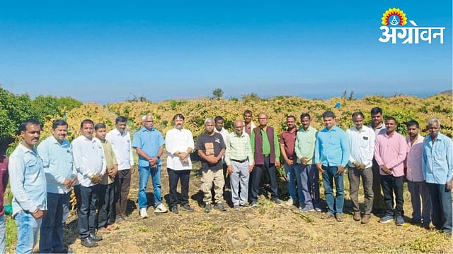 यावेळी मोहोरातील नर व संयुक्त फुलांची ओळख, भुरी रोगाची तसेच मोहरावर येणाऱ्या विविध किडींची सविस्तर माहिती देऊन या मोहराचे संरक्षण, फळाचा आकार वाढवणे दर्जा राखणे, निर्यात आदी विषयी मार्गदर्शन केले. श्री. चव्हाण म्हणाले, की डॉ. कापसे यांच्या मार्गदर्शनाखाली या बागेतून एकरी साधारणतः चार ते साडेचार टन माल मिळण्याचा अंदाज अंदाज आहे.