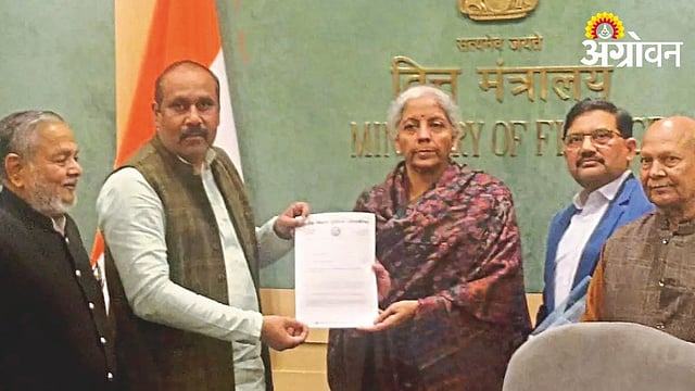 भारतीय किसान संघटनेच्या १९ सदस्यांनी शनिवारी (ता. ७) अर्थमंत्र्यांशी दिल्लीस्थित वित्त मंत्रालयाच्या ७२ क्रमांकाच्या खोलीत आयोजित बैठकीत संवाद साधला. या वेळी संघटनेचे अराजकीय प्रवक्ता धर्मेंद्र मलिक यांनी अर्थमंत्र्यांना निवेदन दिले. निवेदनानुसार, खते, बियाणे, फवारणीसाठी लागणारे कीटकनाशक व इतर निविष्ठा तसेच ट्रॅक्टरचलित अवजारे, सर्व घटक हे जीएसटीमुक्त करण्यात यावे, अशी मागणी केली.
