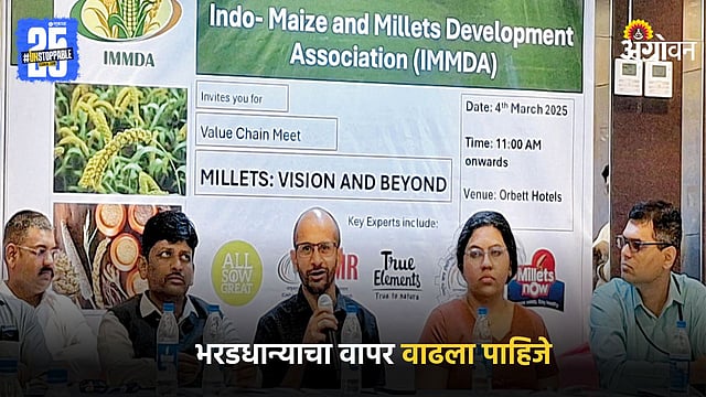 स्मार्ट प्रकल्पांतर्गत स्थापन केलेल्या ‘इंडो मेझ मिलेट डेव्हलपमेंट असोसिएशन’च्या (ईमडा) वतीने ‘भरडधान्यातील संधी’ या विषयावर मंगळवारी (ता.४) परिसंवादाचे आयोजन करण्यात आले होते. या वेळी असोसिएशनचे अध्यक्ष सूर्यकांत सांडसे, स्मार्ट प्रकल्पाचे सुशांत पवार, राष्ट्रीय अन्न प्रक्रिया आणि उद्योजकता संस्थेचे प्रा. प्रारब्ध बडगुजर, ग्रॅंड थ्रॉटंटच्या शुभ्रा देशपांडे, ट्रू एलिमेंटचे संचालक श्रीजित मुळे, मेलो फूडच्या ऋतुजा पाटील, फूड नेस्टच्या प्रीती देशमुख यांच्यासह विविध शेतकरी उत्पादक कंपन्यांचे प्रतिनिधी, लघुउद्योजक उपस्थित होते.