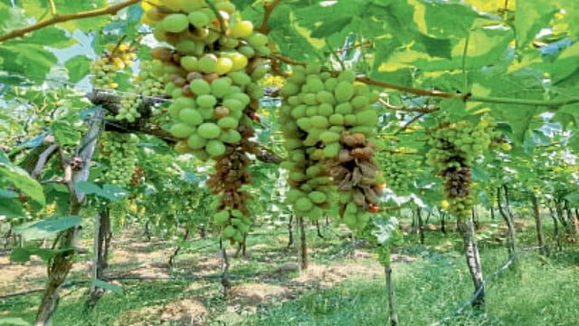 मात्र, फळधारणा झाल्यानंतर द्राक्षे काळे पडून सुकत चालले आहे. त्यांनी औषधींचा वापर करून ही बघितला. मात्र, यात त्यांना यश आले नाही. द्राक्ष बाग व्यापारी येऊन बघतात मात्र, ती घेण्यास नकार देत असल्याचे