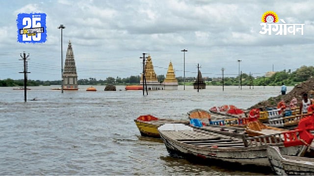 Pandharpur News: उजनी व वीर धरणातून मोठ्या प्रमाणावर सोडण्यात आलेल्या पाण्यामुळे चंद्रभागा नदी दुथडी भरून वाहत असून, पंढरपुरात पूरस्थिती निर्माण होण्याची शक्यता निर्माण झाली आहे. या पाण्यामुळे नदीने इशारा पातळी ओलांडली असून, जुना दगडी पूल, भक्त पुंडलिक मंदिरांसह इतर अनेक घाट पाण्याखाली गेले आहेत.