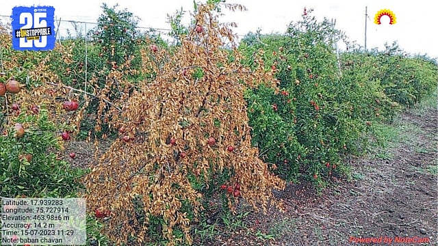 बदलत्या वातावरणात डाळिंब पिकास अति तापमान, अवेळी पाऊस, वादळ वारे, गारपीट व अवर्षण अशा नैसर्गिक आपत्तींचा सामना करावा लागतो. त्यात मागील काही वर्षांपासून मर रोग, तेल्या (बॅक्टेरियल ब्लाइट), खोडावरील भुंगेरे इत्यादी कीड-रोगांच्या प्रादुर्भावामुळे डाळिंब बागा अडचणीत येऊन लागवड क्षेत्र कमी होत आहे.