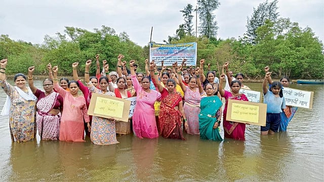 Sindhudurg News : जिल्ह्यातील शिरोडा वेळागर (ता. वेंगुर्ला) येथील पर्यटन प्रकल्पासाठी संपादित केलेल्या क्षेत्रापैकी ९ हेक्टर क्षेत्र वगळण्यात यावे या मागणीसाठी वेळागर येथील महिलांनी शुक्रवारी (ता. १६) खाडीत उतरून आंदोलन केले. जोपर्यंत मागणी पूर्ण होत नाही, तोपर्यंत आंदोलन सुरू ठेवण्याचा इशारा देखील शेतकरी महिलांनी दिला.