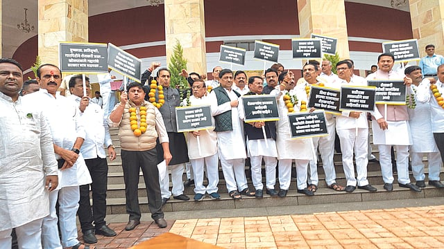 Nagpur News : ‘शेतकरी झाला कासावीस, खोके सरकार चारसो बीस’ अशा घोषणाबाजी करीत विरोधकांनी मॉन्सूनोत्तर पावसामुळे बाधितांसाठी भरपाईच्या मुद्द्यावर विधान भवनाच्या पायऱ्यांवर गुरुवारी (ता.७) आंदोलन करण्यात आले. त्यावरूनच अधिवेशन शेतकऱ्यांच्या प्रश्नावर गाजणार असल्याचे स्पष्ट झाले.