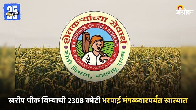 राज्य सरकारने शेतकऱ्यांचा हिस्सा आणि आपला विमा हप्ता दिल्यामुळे शेतकऱ्यांना खरीपातील २ हजार ३०८ कोटी रुपयांची भरपाई मिळण्याचा मार्ग मोकळा झाला आहे. शेतकऱ्यांच्या खात्यात रक्कम जमा होण्याला सुरुवात होईल आणि मंगळवारपर्यंत शेतकऱ्यांच्या खात्यात ही रक्कम जमा होईल, असे कृषी विभागाने सांगितले.