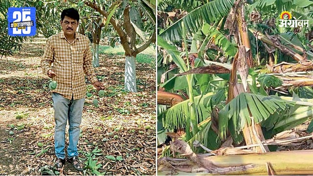 सजपूर जवळा येथील रामभाऊ इंगळे म्हणाले, की आमच्या गावात यंदा मोठ्या प्रमाणावर केळी लागवड झाली होती. सोमवारी (ता.५) सायंकाळी जोराच्या वाऱ्यामुळे केळीची झाडे घडासकट मोडून पडली आहेत. माझी एक एकर केळीची बाग मोडून पडली आहे. कारेगाव येथील समर्थ व कृष्णा आवचार म्हणाले, की आमच्या पाच एकरांतील जवळपास पन्नास टक्के केसर आंबे वादळामुळे गळून पडल्याने मोठे आर्थिक नुकसान झाले आहे. नुकसानीचे पंचनामे करून आर्थिक मदत देण्याची मागणी शेतकऱ्यांनी केली आहे.