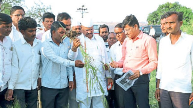 नुकसानग्रस्त भागात कृषी मंत्री अब्दुल सत्तार शेताच्या बांधावर जाऊन पाहणी करत असून शेतकऱ्यांना धीर देत आहेत.