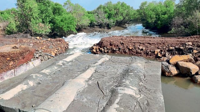 सरेभाग येथील टॉवरजवळील उघाडीचे कामासाठी पाणी अडवण्याकरिता तयार केलेला बांध ठेकेदाराने समुद्राची भरती-ओहोटीची वेळ लक्षात न घेता फोडल्याने खारे पाणी भातशेतीत शिरले. त्यामुळे जवळपास ५०० ते ६०० एकर शेतीचे नव्याने नुकसान झाले आहे.
