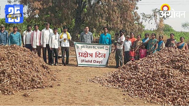 Parbhani News : परभणी कृषी विज्ञान केंद्रातर्फे मंगरुळ (ता. मानवत) येथे मंगळवारी (ता. १५) हळद उत्पादन वाढीसाठी सूक्ष्म मूलद्रव्यांचा वापर प्रात्यक्षिक प्रक्षेत्र दिनाचे आयोजन करण्यात आले होते.