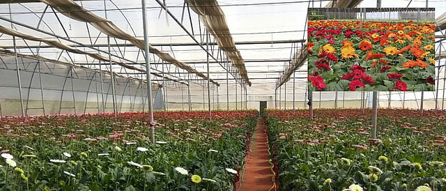 हरितगृहातील जरबेरा लागवडीसाठी पाण्याचा उत्तम निचरा होणारी जमीन निवडावी. दर्जेदार फुलांच्या उत्पादनासाठी उतीसंवर्धित रोपांची लागवड करावी. सुधारित तंत्रज्ञानाचा अवलंब केल्यास या पिकाचे भरपूर उत्पन्न मिळते. जरबेरा फुलांमध्ये विविध रंग असून मागणी भरपूर असते. त्यामुळे जरबेरा लागवडीकडे शेतकऱ्यांचा ओढा वाढत आहे. जाती : बाजारपेठेच्या मागणीनुसार जातींची लागवड करावी. जमीन : पाण्याचा उत्तम निचरा होणारी (सामू ५.५ ते ६.०) निवडावी. गादी वाफ्याची रुंदी ६० सें.मी., उंची ४० सें.मी., दोन वाफ्यातील अंतर ५० ते ६० सें.मी. ठेवावे. लागवड : जमिनीचे निर्जंतुकीकरण (तज्ज्ञांच्या सल्ल्याने) करून रोपे गादी वाफ्यावर दोन ओळीत ३० सें.मी. x ३० सें.मी. अंतरावर ( ७ ते ९ प्रति चौ.मी.)लावावीत. उतीसंवर्धन पद्धतीने तयार केलेली रोपे निवडावीत. रोपे जास्त खोलीवर लावू नयेत. चांगली उत्पादन क्षमता असलेल्या झाडात पाने व फुलांचे गुणोत्तर २ः४ असते. पानांचे प्रमाण वाढल्यास फुले कमी मिळतात. पाणी व्यवस्थापन : ठिबक सिंचनातून (उपनळीतील अंतर ३० सें.मी., तोटीतील अंतर ३० सें.मी., तोटी क्षमता २-३ लिटर प्रतितासपेक्षा कमी) दररोज बाष्पीभवनाच्या ६० टक्के पाणी द्यावे. खत व्यवस्थापन : कुजलेले शेणखत १० किलो प्रति चौ. मी. या प्रमाणात मिसळून द्यावे. मातीपरीक्षणानुसार खते द्यावीत. सुरवातीचे तीन महिने १०ः१५ः२० ग्रॅम/ चौ.मी./ महिना व चौथ्या महिन्यांपासून १५ः१०ः३० ग्रॅम चौ.मी./ महिना याप्रमाणात नत्र, स्फुरद व पालाश खतांची मात्रा द्यावी. खतमात्रा चार आठवड्यात विभागून द्यावी. याशिवाय सूक्ष्म द्रव्ये बोरॉन, कॅल्शियम, मॅग्नेशियम इ. प्रत्येकी १.५ मि.लि.प्रतिलिटर पाणी या प्रमाणात महिन्यातून एकदा फवारणी करावी. खते ठिबक सिंचनाद्वारे दिल्यास झाडांची वाढ जोमदार होऊन भरघोस व दर्जेदार फुलांचे उत्पादन मिळते. त्यासाठी ठिबक सिंचनातून लागवडीनंतर नत्र, स्फुरद व पालाश २०ः२०ः२० या विद्राव्य खतातून ०.४ ग्रॅम प्रति झाड या प्रमाणात एक दिवसाआड पहिल्या तीन महिन्यांपर्यंत द्यावे. त्यामुळे फूट चांगली मिळते. चौथ्या महिन्यापासून फुले येण्यास सुरवात झाल्यानंतर नत्र, स्फुरद व पालाश १५ः८ः३५ या विद्राव्य खतातून ०.४ ग्रॅम प्रति झाड या प्रमाणात एक दिवसाआड द्यावे. त्यामुळे फुलांचे उत्पादन वाढून प्रतही सुधारते. अन्नद्रव्यांच्या कमतरतेनुसार सूक्ष्म अन्नद्रव्यांची खते दर आठवड्याने किंवा पंधरवड्याने चिलेटेड स्वरूपात द्यावीत. उत्तम परिणाम मिळण्याच्या दृष्टीने पाणी व खते योग्य प्रमाणात गरजेनुसार द्यावीत.