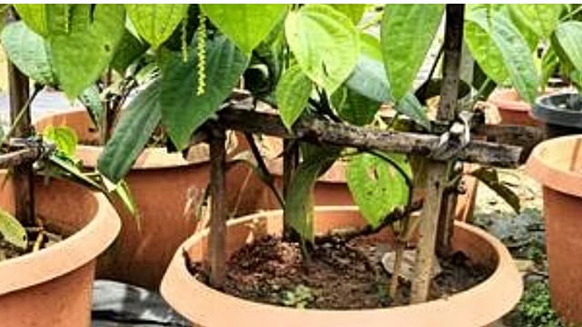 बुशपेपर कमी जागेत लावण्यासाठी उत्तम असते. झुडूप कुंडीमध्ये चांगले वाढते. तसेच या रोपांना जागाही कमी लागते. बुशपेपर म्हणजे झुडूप मिरी. काळी मिरीच्या फुले आणि फळे धरणाऱ्या फांद्यापासून बुशपेपर मिरीचे रोप तयार करतात. काळी मिरी वेल उंच आधाराच्या झाडावर वाढते. बुशपेपर म्हणजेच झुडूप मिरी अत्यंत कमी वाढते. त्यामुळे त्याची लागवड कुंडीत किंवा शेतात आधाराशिवाय करता येते. बुशपेपरची लागवड छाट कलमे तयार करून करतात. कुंडीमध्ये माती, वाळू आणि चांगले कुजलेले शेणखत १:१:१ प्रमाणात ठेवून कुंडी मिश्रणाने भरावी. कुंडीमध्ये कमीत कमी १० किलो मिश्रण भरावे. त्यामुळे झुडपाची वाढ जोमदार होते व उत्पादन जास्त मिळते. झुडपांची लागवड करून कुंडी अर्धसावलीत ठेवावी. बुशपेपर शेतामध्ये लावायचे असल्यास लागवड १ बाय १ मीटर किंवा १.५ बाय १.५ मीटर अंतरावर करावी. पावसाळा संपल्यावर बुशपेपर मिरी रोपांना आठवड्यातून दोन वेळा पाणीपुरवठ्याची सोय करावी. ठिबक किंवा मायक्रोस्प्रिंक्लर या सुधारित पद्धतीचा वापर पाणीपुरवठ्यासाठी करावा.बुशपेपरला वर्षभर घड येत असल्यामुळे योग्य प्रमाणात खते देणे आवश्यक आहे. कुंडीमधील बुशपेपर रोपांना दर दोन महिन्यांनी ५०० ग्रॅम कंपोस्ट खत, ५ ग्रॅम युरिया आणि ३ ग्रॅम सिंगल सुपर फॉस्फेट आणि ३ ग्रॅम म्युरेट ऑफ पोटॅश इतकी खताची मात्रा द्यावी. त्यामुळे बुशपेपरचे पूर्ण भरलेले घड लागतात. कुंडीमधील झुडपापासून १०० ते १५० ग्रॅम वाळलेली काळी मिरी प्रतिवर्षी मिळते. - डॉ. राजन खांडेकर, ८२७५४५४९७९, - किरण शिगवण, ९०४९८५३८१५ - सुमेद थोरात, ७५८८६९६५६९ (उद्यानविद्या महाविद्यालय, डॉ. बाळासाहेब सावंत कोकण कृषी विद्यापीठ, दापोली)