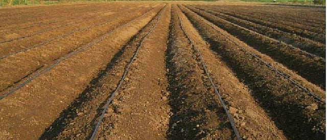 दोन इनलाईन नळ्यांमध्ये ४.५ ते ५ फूट अंतरावर पिकांची लागवड |