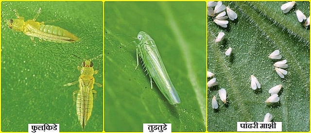 कपाशीवर मावा, तुडतुडे, फुलकिडे व पांढरी माशी या किडी आर्थिक नुकसानीची संकेत पातळी गाठताच पिकावर ५ टक्के निंबोळी अर्काची तातडीने प्रतिबंधात्मक उपाययोजना म्हणून फवारणी करावी. किंवा बुप्रोफेजीन (२५ %) २० मिली किंवा इमिडाक्लोप्रिड (१७.८ % एस एल) २.५ मिली प्रति १० लिटर पाण्यामध्ये मिसळून फवारणी करावी. पुढील दिवसात अंदाजे पावसानंतर स्वच्छ वातावरण असताना फवारणी करावी.
