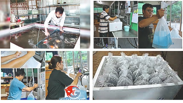 ६) लांब अंतरावर वाहतूक करताना पिशव्या सुरक्षित राहण्यासाठी पुठ्ठ्याच्या खोक्यांमध्ये ठेऊन सभोवताली थर्माकोल किंवा कागदाचे आच्छादन घालावे. चिकटपट्टीचा वापर करून खोके बंद करावे. माशांचा प्रकार, आकार, वाहतुकीसाठी लागणारा कालावधी, पिशव्यांचा आकार यानुसार एक पिशवीमध्ये किती संख्येने मासे ठेवावेत याचे प्रमाण ठरते.