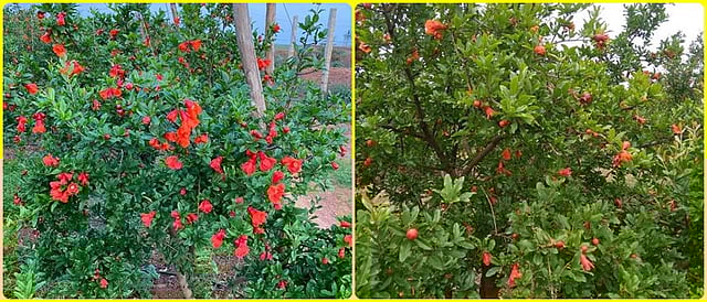 मृगबहार अ) अन्नद्रव्य व्यवस्थापन फळबागेची अवस्था - ताण तोडणे १) कुजलेले शेणखत २५-३० किलो किंवा शेणखत १५-२० किलो अधिक गांडूळ खत २ किलो अधिक निंबोळी पेंड २ किलो प्रती झाड द्यावे. किंवा कुजलेले कोंबडी खत ७.५ किलो चांगले अधिक निंबोळी पेंड ७.५ किलो चांगले प्रती झाड याप्रमाणे द्यावे. २) प्रत्येक झाडाला जिप्सम २.५ ते २.८ किलो आणि मॅग्नेशिअम सल्फेट ८०० ग्रॅम मुळाजवळ (राईझोस्फियर) मातीत मिसळा. ३) जैव-फॉर्म्युलेशन जसे अॅझोस्पिरिलम स्पेसीज, अॅस्परजिलस नायजर, ट्रायकोडर्मा व्हिरीडी आणि पेनिसिलिअम पिनोफायलम हे चांगल्या कुजलेल्या शेणखतासोबत मिसळावे. ६०% ओलावा ठेवून सावलीत १५ दिवस नियमितपणे उलथापालथ करत राहावे. त्यानंतर ते १०-२० ग्रॅम प्रती झाड द्यावे . ४) अर्बुस्कूलर मायकोरायझा बुरशी, एएमएफ (राइझोफॅगस इररेगुलरिस) १०-१५ ग्रॅम प्रती रोप/झाड द्यावे. ५) खत दिल्यानंतर लगेच हलके पाणी द्यावे. ब) कीड व्यवस्थापन अंकुरण्याची अवस्था : १. पहिली फवारणी ः कडुनिंब तेल (१%) किंवा अॅझाडिरेक्टिन (१०,००० पीपीएम) ३ मिली अधिक स्प्रेडर स्टिकर ०.२५ मिली प्रती लीटर किंवा करंज बियांचे तेल ३ मिली अधिक स्प्रेडर स्टिकर ०.२५ मिली प्रती लीटर. २. पहिल्या फवारणीनंतर ७-१० दिवसाने ः सायअॅण्ट्रानिलीप्रोल ०.७५ मिली अधिक स्प्रेडर स्टिकर ०.२५ मिली प्रती लीटर किंवा थायामिथोक्झाम (२५% डब्ल्यूजी) ०.५ ग्रॅम अधिक स्प्रेडर स्टीकर ०.२५ मिली प्रती लीटर. फुल कळीची/फुलांची अवस्था : फवारणी प्रती लीटर पाणी स्पिनेटोरम (१२ % एससी) १ मिली किंवा स्पिनोसॅड (४५% एससी) ०.५ मिली या सोबत स्प्रेडर स्टिकर ०.२५ मिली. मायक्रोन्यूट्रिएंट मिश्रणाची १-१.५ किलो प्रती हेक्टर या प्रमाणे फवारणी करावी. फुलधारणेसाठी नॅप्थील अॅसेटीक अॅसीड २२.५ मिली प्रती १०० लीटर पाणी. फळधारणेस सुरुवात/फळधारणा : क्लोरअॅण्ट्रानिलीप्रोल (१८.५% ईसी) ०.७५ मिली अधिक स्प्रेडर स्टिकर ०.२५ मिली प्रती लीटर /लि प्रमाणे फवारावे. फुलधारणा अवस्था : जर सूत्रकृमींचा प्रादुर्भाव झाला असेल तर फ्ल्युन्सल्फोन (२% जीआर) ४० ग्रॅम प्रती झाड याप्रमाणे दोन वर्षापुढील झाडाना ड्रिपर्सच्या संख्येप्रमाणे द्यावे. प्रत्येक ड्रिपरच्या खाली मातीच्या सम प्रमाणात किंवा ४० ग्रॅम प्रती ४ ते ५ लीटर पाणी विरघळून झाडाभोवती गोलाकार पद्धतीने ५-१० सेंमी खोल ओतावे. क) आंतरमशागतीची कामे १) वाळलेली, मोडलेली सर्व अवशेष काढून टाका. तण काढून त्यांची योग्य प्रकारे विल्हेवाट लावावी. २) पहिल्या पावसानंतर बागेतील मातीवर ब्लिचिंग पावडर (२% ) ची फवारणी करावी. ३) फळ लिंबाच्या आकाराची झाल्यानंतर १०० ग्रॅमची होईपर्यंत वेळोवेळी नवीन फुटवे (स्प्राउट्स) काढावीत. ४) झाडाखालील तण काढून बाग स्वच्छ ठेवा. हस्त बहार अ) अन्नद्रव्य 