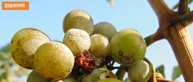वातावरणात होणारे हे बदल द्राक्ष बागेत भुरी रोगाचा प्रादुर्भाव होण्यास अनुकूल आहेत. त्यामुळे द्राक्ष मण्यांच्या अवस्थेनुसार भुरीच्या व्यवस्थापनासाठी योग्य ती काळजी घेणे आवश्यक आहे. यावर्षी वातावरणात सतत होणाऱ्या बदलांमुळे द्राक्ष बागायतदारांना अनेक समस्यांचा सामना करावा लागत आहे. मागील काही दिवसांपासून तापमानात सतत बदल होत आहे. दिवसाचे तापमान ३५ अंश सेल्सिअस तर रात्रीचे तापमान ७ ते ८ अंशापर्यंत कमी होत आहे. यासोबतच काही भागांत पाऊस, गारपीट तर काही ठिकाणी कमी तापमानासह अधिक प्रमाणात धुके पडत असल्याचे दिसत आहे. वातावरणात होणारे हे बदल द्राक्ष बागेत भुरी रोगाचा प्रादुर्भाव होण्यास अनुकूल आहेत. त्यामुळे द्राक्ष मण्यांच्या अवस्थेनुसार भुरीच्या व्यवस्थापनासाठी योग्य ती काळजी घेणे आवश्यक आहे. भुरीसाठी अनुकूल वातावरण