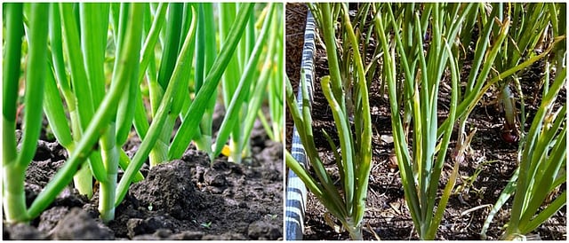जोमदार वाढीची अवस्था (लागवडीनंतर ४५ ते ६० दिवसांनी) अ) लागवडीनंतर ४५ दिवसांनी : सल्फेट ऑफ पोटॅश (फिल्डग्रेड) २० किलो प्रति एकर जमिनीतून द्यावे. (म्युरेट ऑफ पोटॅश) पिकाच्या जोमदार वाढीच्या अवस्थेतील पालाशची गरज सल्फेट ऑफ पोटॅश भागवते. ब) लागवडीनंतर ६० दिवसांनी : ००:५२:३४ हे खत ४ ग्रॅम अधिक सूक्ष्म अन्नद्रव्ये १ ग्रॅम प्रतिलिटर पाणी या प्रमाणे फवारणी करावी. या फवारणीमुळे कंद पोषणाच्या काळात सूक्ष्म अन्नद्रव्यांची कमतरता भासत नाही. या काळात जैव रासायनिक क्रिया घडत असतात. या फवारणीमुळे कंदाचा आकार वाढतो. कंद घट्ट होतात. कंद वाढीची अवस्था (लागवडीनंतर ७५ ते १०५ दिवसांनी) या अवस्थेत ००:००:५० हे खत ५ ग्रॅम अधिक बोरॉन २.५ ग्रॅम प्रतिलिटर पाणी या प्रमाणे फवारणी करावी. ००:००:५० या खतामुळे कांदे पक्व होण्यास मदत होते. बोरॉनमुळे पानात तयार झालेली शर्करा कंदामध्ये उतरते. कंदातील शर्करेचे प्रमाण (टीएसएस) वाढते. कांद्याची गुणवत्ता सुधारते. तसेच साठवण कालावधीदेखील वाढतो. एकात्मिक अन्नद्रव्य व्यवस्थापन १) कांदा पिकाची मुळे उथळ असतात. त्यामुळे कांदा पिकात योग्य वेळी, विभागून खते देणे आवश्यक असते. अपेक्षित उत्पादनासाठी हेक्टरी २५ ते ३० टन चांगले कुजलेले शेणखत वापरल्यास कांद्याची साठवण क्षमता वाढते. २) रब्बी कांद्यासाठी नत्र १०० किलो (युरिया २१७ किलो), स्फुरद ५० किलो (सिंगल सुपर फॉस्फेट ३१३ किलो) आणि पालाश ५० किलो (म्युरेट ऑफ पोटॅश ८३ किलो) प्रतिहेक्टर द्यावे. त्या पैकी अर्धे नत्र (५० किलो - युरिया १०९ किलो), पूर्ण स्फुरद आणि पालाश पुनर्लागवडीच्या वेळी द्यावा. उर्वरित नत्र (५० किलो - युरिया १०९ किलो) पुनर्लागवडीनंतर १ आणि दीड महिन्याने समान हप्त्याने द्यावा. ३) पुनर्लागवडीनंतर वाढीच्या सुरुवातीला तसेच कांदा पूर्ण वाढत असताना (म्हणजेच दोन महिन्यांपर्यंत) नत्राची आवश्यकता अधिक असते. मात्र पूर्ण वाढल्यानंतर नत्राची आवश्यकता नसते. पूर्ण वाढल्यानंतर नत्र दिल्यास किंवा उशिरा दिल्यास डेंगळे व जोडकांदा येणे व साठवणीत कांदा सडणे अशा समस्या उद्भवतात. ४) पिकांच्या मुळांच्या वाढीकरिता स्फुरदाची आवश्यकता असते. ५) जमिनीत पालाशचे प्रमाण भरपूर असले, तरी पिकांना उपलब्ध होणाऱ्या पालाशची मात्रा कमी आहे. पालाश कांद्याचा टिकाऊपणा वाढविण्यासाठी, कांद्याला आकर्षक रंग येण्यासाठी आवश्यक असतो. ६) माती परीक्षण करून, त्या अहवालाप्रमाणे तज्ज्ञांच्या साह्याने खताची मात्रा ठरवावी. कांदा पिकास शिफारस केलेल्या मात्रेपेक्षा जास्त व लागवडीच्या ६० दिवसांनंतर नत्र दिल्यास कांद्याची पात जास्त वाढते, मान जाड होतात. जोड कांद्याचे प्रमाण जास्त निघते. साठवण क्षमता कमी होते.