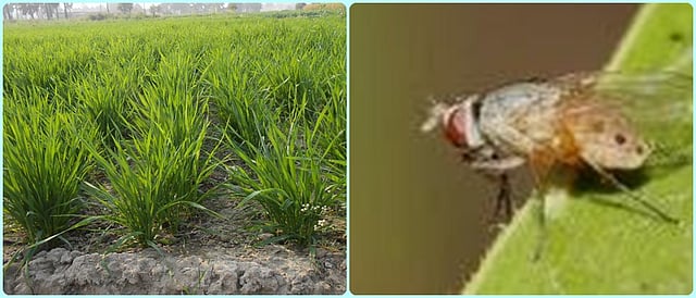 गहू फुटवे फुटण्याची अवस्था खोडमाशीकरिता ढगाळ हवामान पोषक असते. खोडमाशीचा प्रादुर्भाव आढळून आल्यास, फवारणी प्रति लिटर पाणी, निंबोळी अर्क (५ टक्के) किंवा ॲझाडिरेक्टीन (१० हजार पीपीएम) २ ते ३ मि.लि. किंवा क्विनॉलफॉस (२५ टक्के प्रवाही) १.५ मि.लि. गरजेप्रमाणे १ ते २ फवारण्या कराव्यात. जास्त पाणी दिल्यास शेतात सतत ओलावा टिकून राहतो. अति ओलाव्यामुळे रोगाचे प्रमाण वाढण्यास मदत होते. हे लक्षात घेऊन पिकाच्या गरजेनुसारच पाणी द्यावे. शिफारस केल्याप्रमाणेच रासायनिक खतांच्या मात्रा द्याव्यात. युरिया खताचा वापर शिफारशीपेक्षा जास्त प्रमाणात वापर केल्यास तांबेरा रोगाचा प्रादुर्भाव वाढू शकतो. पिकांवर तांबेरा दिसू लागताच, फवारणी - मॅन्कोझेब २.५ ग्रॅम प्रति लिटर पाणी गरजेनुसार दुसरी फवारणी फवारणीनंतर १५ दिवसांच्या अंतराने करावी. मावा व तुडतुडे या किडींचा प्रादुर्भाव दिसून येताच, फवारणी प्रति लिटर पाणी जैविक कीटकनाशक - मेटाऱ्हायझीम ॲनीसोप्ली ५ ग्रॅम. (ही फवारणी संध्याकाळी करावी.) किंवा २) रासायनिक फवारणी - थायामेथोक्झाम (२५ डब्लूजी) ०.१ ग्रॅम किंवा ॲसिटामिप्रिड (२० एसपी) ०.५ ग्रॅम. १० ते १५ दिवसांचे अंतराने अंतराने गरजेप्रमाणे १ ते २ फवारण्या कराव्यात.