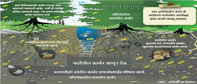 छोट्या छोट्या उपायातून शेतकरी कर्ब संवर्धन करण्यातून जमिनीची सुपीकता वाढवू शकतो. कर्ब उत्सर्जन पर्यायाने जागतिक तापमान वाढ रोखण्यासाठी शेतकऱ्यांची भूमिका अत्यंत महत्त्वाची राहणार आहे. सध्या सरासरीइतक्या पावसाचे भाकित वर्तवण्यात आले असले तरी संभाव्य विषम पाऊसमानाची भीती शेतकऱ्यांना सातत्याने भेडसावणार असल्याचे तज्ज्ञांचे मत आहे. हवामानातील अशा विचित्र बदलांमध्ये वातावरणातील कर्बवायूचे वाढते प्रमाण हा चिंतेचा विषय आहे. माणसाची लोकसंख्या सातत्याने वाढत असून, त्याची उर्जेची गरजही वाढत आहे. औद्योगिकरणानंतर दगडी कोळसा, खनिज तेलाचा वापर गुणाकाराच्या पटीत वाढत गेला. वातावरणातील कर्बवायूचे प्रमाण वाढत गेले. कर्ब उत्सर्जन कोणी कमी करायचे, यावर जागतिक पातळीवर वाद सुरू आहेत. अन्य बाबी आपण थोड्या बाजूला ठेवून यात शेतकरी काय करू शकतो, यावर आपले लक्ष केंद्रित करू. काही परदेशी पर्यावरण तज्ज्ञांच्या मते, मूळ जमिनीत साठविलेला सेंद्रिय कर्बाचा साठा शेतीसह विविध कारणाने कमी होत चालला असून, ते पर्यावरणाच्या नाशाला महत्त्वाचे कारण आहे. जंगले तोडली गेल्याने लाकूड रूपातील सेंद्रीय कर्ब उद्ध्वस्त झाला. शेतजमिनीत असलेले मृत सेंद्रिय पदार्थांचे आच्छादन मातीच्या उलथापालथीत उद्ध्वस्त झाले. नवीन सेंद्रिय कर्ब तयार होण्याचे काम थांबले. परिस्थितिकीची संकल्पना ः एक पूर्ण वाढलेल्या जंगलात नत्राचा साठा कोठे व किती प्रमाणात होतो, याच्या अमेरिकेत झालेल्या सर्वेक्षणातील निष्कर्ष ः