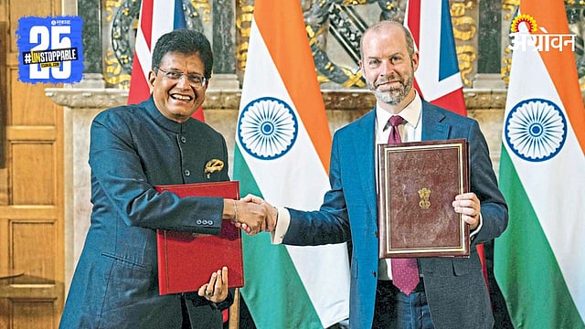 London News: भारत आणि ब्रिटन यांच्यातील ऐतिहासिक मुक्त व्यापार करारावर (एफटीए) गुरुवारी (ता. २४) शिक्कामोर्तब झाले. भारताच्या कृषी अर्थव्यवस्थेला याचा मोठा लाभ होणार असून, २०३० पर्यंत द्विपक्षीय व्यापारी करार दुप्पट करण्याचे उद्दिष्ट निर्धारित करण्यात आले आहे.