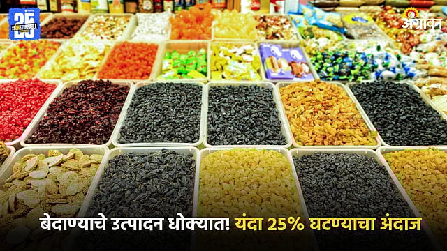 गेल्या सात वर्षांपूर्वीपासून प्रत्येक वर्षी १० हजार टनांनी बेदाण्याच्या उत्पादन वाढ झाली असल्याचे चित्र आहे. चार वर्षांपूर्वी ६२ हजार टनांनी बेदाण्याचे उत्पादन वाढले होते. अर्थात त्यानंतर बेदाण्याचे उत्पादन दोन लाख टनांहून अधिक उत्पादनाचा आलेख सुरू आहे. मात्र सन २०२२-२३ पेक्षा गतवर्षी २६ हजार टनांनी बेदाण्याचे उत्पादन घटले होते. यंदा २५ टक्के म्हणजे ६१ हजार टनांनी बेदाण्याचे उत्पादन कमी होण्याची शक्यता आहे.