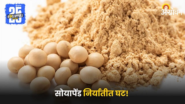 सोयापेंड निर्मितीचा विचार करता, यंदाच्या पहिल्या चार महिन्यांमध्ये निर्यात जवळपास दीड लाख टनांनी कमी झाली. गेल्या हंगामात ऑक्टोबर ते जानेवारी या चार महिन्यांमध्ये ९ लाख ३४ हजार टन निर्यात झाली होती. यंदा मात्र निर्यात ७ लाख ९६ हजार टनांवरच स्थिरावली. सोयापेंड निर्यात पहिल्या तीन महिन्यांमध्ये म्हणजेच ऑक्टोबर, नोव्हेंबर आणि डिसेंबर महिन्यात कमीच राहीली. मात्र जानेवारी महिन्यात निर्यात नगण्य प्रमाणात वाढली होती. जानेवारी २०२५ मध्ये २ लाख ७८ हजार टन निर्यात झाली. तर जानेवारी २०२४ मधील निर्यात २ लाख ७५ हजार टन झाली होती.