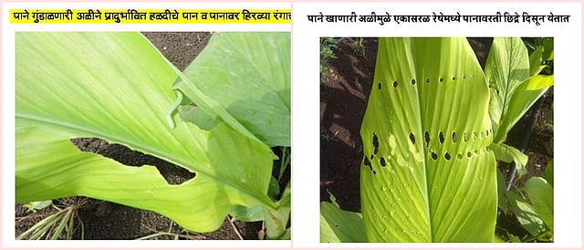 सध्या हळद पिकाची शाकीय वाढ होण्याचा कालावधी आहे. या अवस्थेमध्ये हळदीला फुटवे येतात. या काळामध्ये हळद पिकावर पाने गुंडाळणाऱ्या व पाने खाणाऱ्या अळीचा प्रादुर्भाव होतो. या किडींचे वेळीच नियंत्रण करण्यासाठी योग्य उपाययोजना त्वरित करणे गरजेचे आहे.