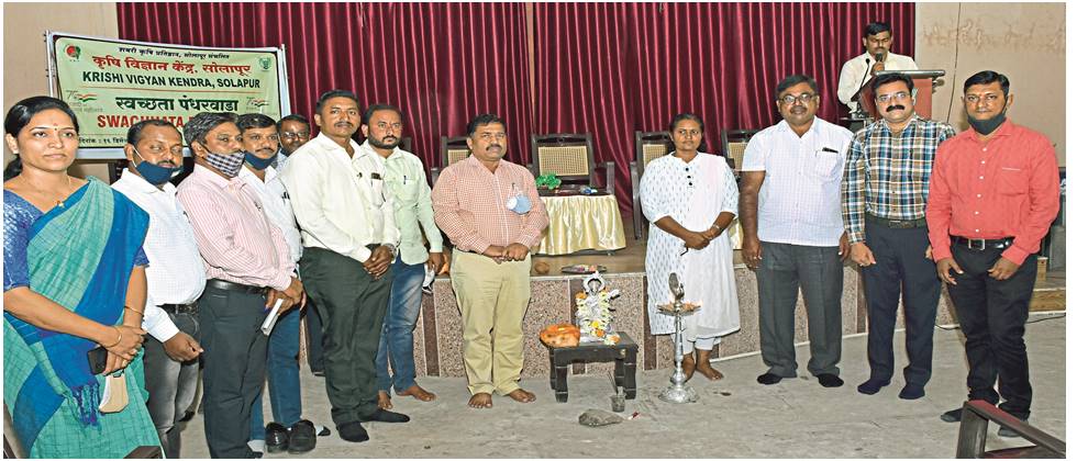 सोलापूर ः नैसर्गिक शेतीवर सोलापुरातील कृषी विज्ञान केंद्रामध्ये शेतकरी- शास्त्रज्ञ सुसंवादाचे आयोजन करण्यात आले होते. नैसर्गिक आणि सेंद्रिय शेतीच्या उपयुक्ततेबद्दल तज्ज्ञांनी या वेळी शेतकऱ्यांना मार्गदर्शन केले. राष्ट्रीय स्तरावरील सेंद्रिय शेती मेळाव्याच्या निमित्ताने पंतप्रधान नरेंद्र मोदी यांचे नैसर्गिक शेती या विषयावरील मार्गदर्शनाचे थेट प्रक्षेपण या वेळी उपस्थित शेतकऱ्यांना दाखवण्यात आले. तसेच या निमित्ताने कृषी विज्ञान केंद्रातील स्वच्छता पंधरवड्याचे (१६ ते ३१ डिसेंबर २०२१) उद्घाटनही करण्यात आले. कार्यक्रमाच्या अध्यक्षस्थानी कृषी विज्ञान केंद्राचे वरिष्ठ शास्त्रज्ञ डॉ. लालासाहेब तांबडे हे होते. तर प्रमुख पाहूणे म्हणून उपविभागीय कृषी अधिकारी जयवंत कवडे, विभागीय कृषी संशोधन केंद्र, सोलापूरचे प्रतिनिधी डॉ. विकास लोंढे, तालुका कृषी अधिकारी सौ. मनीषा मिसाळ, कृषिभूषण नागेश नन्नवरे, शिवराज कोटगी इत्यादी उपस्थित होते. या वेळी सेंद्रिय शेतीबाबत बोलताना नागेश ननवरे म्हणाले, ‘‘सेंद्रिय शेतीसाठी आधी देशी गाई सांभाळणे आवश्यक आहे. त्या माध्यमातून पिकांना आवश्यक असणाऱ्या निविष्ठा आपल्याला मिळतात. सेंद्रिय शेतीचे तंत्र सोपे आणि सुलभ आहे. या पद्धतीमुळे पिकांचा खर्च आणि एकूण उत्पन्न यामध्ये नक्कीच फरक दिसून येतो तर प्रगतिशील शेतकरी शिवराज कोटगी, यांनी द्राक्ष शेतीमध्ये सेंद्रिय शेतीपद्धतीचा होत असलेल्या उपयोगांबद्दल माहिती दिली. डॉ. व्ही. एम. लोंढे यांनी मातीचे आरोग्य व त्याची काळजी आणि सेंद्रिय शेती मध्ये त्याचे महत्त्व कसे आहे, हे पटवून सांगितले.’’ श्री. कवडे आणि सौ. मिसाळ यांचीही भाषणे झाली. प्रास्ताविक डॉ. तांबडे यांनी केले.