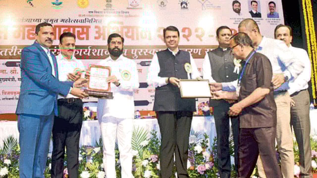 सोलापूर ः ‘महाआवास अभियान ग्रामीण २०२०-२१’ (Maha Awas Abhiyan Rural) मध्ये राबविण्यात आलेल्या उपक्रमांत जिल्ह्याला वेगवेगळे तीन पुरस्कार मिळाले. मुख्यमंत्री एकनाथ शिंदे (Ekunath Shinde) आणि उपमुख्यमंत्री देवेंद्र फडणवीस (Devendra Fadanvis) यांच्या हस्ते जिल्हा परिषदेचे मुख्य कार्यकारी अधिकारी दिलीप स्वामी यांनी हे पुरस्कार स्वीकारले.
