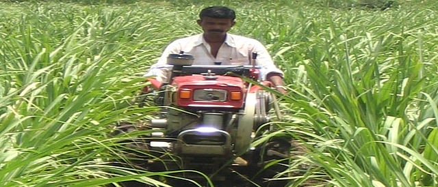पॉवर टिलरमधील रोटोव्हेटरचा वापर नांगरट, ढेकळे बारीक करणे, जुन्या पिकांचे अवशेष काढणे, चिखलणी करण्यासाठी केला जातो. यामधील अर्ध गोलाकार कुदळीसारखे फाळ हे कोरडी नांगरट, तणनियंत्रण, खोली नांगरट यासाठी वापरले जातात. कल्टीव्हेटर ही यंत्रणा फळबाग, वनशेतीमधील मशागतीसाठी उपयुक्त आहे. वेळ व मजुरांची बचत तसेच पशुशक्तीला पर्याय म्हणून शेतकऱ्यांसाठी पॉवर टिलर हे यंत्र विकसित करण्यात आले आहे. या यंत्राद्वारे कोरडी नांगरणी, चिखलणी, मशागत व अंतर्गत मशागत, पाण्याचा पंप चालवण्यापासून ते कीडनाशक फवारणीची कामे करता येतात. याचबरोबरीने वाहतूक, भात भरडणी, उसाचे चरक चालवणे ही सर्व कामे करणे देखील शक्य आहे. पॉवर टिलरचे मुख्य भाग ः १) इंजीन,२) शक्ती संचारना यंत्रणा,३) ब्रेक आणि स्टिअरिंग प्रणाली,४) गती नियंत्रणाची व्यवस्था ५) ट्रॅशनची चाके इ. रोटाव्हेटर ः १) रोटोव्हेटर हे पॉवर टिलरचे मुख्य अवजार आहे. रोटोव्हेटरचा वापर नांगरट, ढेकळे बारीक करणे, जुन्या पिकांचे अवशेष काढणे, चिखलणी करण्यासाठी केला जातो. २) यामध्ये १२ ते २२ या संख्येत फाळ जोडण्याची सोय केलेली असते. यामधील अर्ध गोलाकार कुदळीसारखे असणारे फाळ हे कोरडी नांगरट, तणनियंत्रण, खोली नांगरटीसाठी वापरले जातात. विळ्याच्या आकाराचे फाळ तसेच तोंडाला वक्रता असणारे चपटे फाळ चिखलणीसाठी वापरले जातात. ३) कल्टीव्हेटर ही यंत्रणा फळबाग, वनशेतीमधील मशागतीसाठी उपयुक्त आहे. पॉवर टिलरमुळे आंतरमशागतीची कामे वेळेत पूर्ण होतात. पॉवर टिलरचे व्यवस्थापन ः १) इंजीन व एअर क्लिनरमधील तेलाची पातळी वेळेवर तपासावी. ती कमी असल्यास बरोबर करून घ्यावी. २) इंजीन फाउंडेशन व चॅसिचे नट-बोल्ट घट्ट बसवावेत. चाक व दातांचे नट बोल्ट घट्ट बसवावेत. ३) चाकामधील हवेचा दाब वेळोवेळी तपासावा. प्रमाणित दाबाइतकी चाकामध्ये हवा भरावी. ४) पॉवर टिलरच्या व्ही बेल्टचा ताण तपासून घ्यावा. बेल्टच्या मध्यभागी दाबल्यानंतर १२ मि.मी. पेक्षा जास्त दाबला जाणार नाही, अशा प्रकारे बेल्ट घट्ट करावा. ५) गिअर बॉक्स, रोटरी चेनमधील तेलाची पातळी तपासावी, तसेच नियमितपणे ऑइल फिल्टर, डिझेल फिल्टर आणि इंजीन ऑइल बदलावे. ६) इंजिनमध्ये थंडीच्या दिवसांत एस.ए.ई. ३० व उन्हाळ्यात एस.ए.ई. ४० प्रतीचे वंगण तेल वापरावे. ७) गिअर बॉक्समध्ये एस.ए.ई. ९० प्रतीचे तेल वापरावे. हे तेल १५० तासांनंतर बदलावे. ८) वेळोवेळी क्लच-शाफ्ट, क्लच रॉड, टेलव्हिल बुश, ऍक्सिलेटर केबल यांना तेल द्यावे. ९) रोटाव्हेटर शाफ्टच्या ग्रीस कपमधील ग्रीस दर २५ तासांच्या कामानंतर बदलावे. पॉवर टिलर चालवताना घ्यावयाची काळजी ः १) पॉवर टिलर विकत घेतल्यानंतर सोबत मिळणारी माहिती पुस्तिका काळजीपूर्वक वाचावी. सर्व भाग व प्रणालींची माहिती करून घ्यावी. २) श