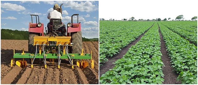 कमी खर्चात आंतरमशागत दिवसभरात चांगल्या वाफसा स्थितीत एक हेक्टरवर आंतरमशागत शक्य झाल्याचे आढळले आहे. बैलजोडीच्या साह्याने सोयाबीन किंवा हरभरा पिकात आंतमशागतीसाठी हेक्टरी पाच ते सहा हजार रुपये खर्च येतो. मात्र ‘बीबीएफ’ यंत्राचा वापर केल्यास तो ५० ते ४० टक्के कमी येतो. अलीकडील काळात मजूरटंचाई मोठ्या प्रमाणात भेडसावते. अशा काळात तर बीबीएफचा वापर अतिशय दिलासादायक ठरल्याचे निरीक्षण केव्हीकेने नोंदविले आहे. मूलस्थानी जलसंधारण जिल्ह्यात काळी कसदार जमीन तापी, गिरणा नदीकाठी आहे. केव्हीकेचे प्रक्षेत्र देखील सुपीक, काळ्या कसदार जमिनीचे आहे. या जमिनीत पाणी साचले, तर पूर्ण हंगाम वाया जाण्याची भीती असते. अतिपावसात उत्पादन ६० ते ७० टक्के कमी येते. अनेकदा तर चाराही हाती येत नाही. या समस्येवरही बीबीएफ तंत्र मात करते. पाऊस कमी झाल्यास पाणी सरीत मुरणे शक्य होते. अनेकदा अतिपावसात पाण्याबरोबर मातीचा सुपीक थर वाहून जातो. अतिरिक्त पाणी सरीवाटे काढून टाकणे व मातीचा थर वाचविण्याचे काम या तंत्राद्वारे शक्य होते. बियाणे बचत सोयाबीन पिकाचे उदाहरण घेतल्यास एकरी ३० ते ३५ किलोपर्यंत बियाणे वापरले जाते. ‘बीबीएफ’ तंत्रामुळे ते केवळ २० ते २२ किलो पुरते. असेच प्रमाण हरभऱ्यासाठी देखील आहे. एकरी आठ ते १० किलो बियाणे बचत करणे शक्य झाले आहे. त्यामुळे बियाण्यावरील २५ टक्के खर्चदेखील कमी करणे शक्य झाले आहे. उत्पादन सोयाबीन व हरभऱ्यात एकरी एक ते दीड क्विंटल वाढ या तंत्रामुळे करता आल्याचे केव्हीकेचे निरीक्षण आहे. अतिपाऊस किंवा बियाणे उगवून न येणे अशा समस्या असतानाही जेथे अन्यत्र सोयाबीनचे एकरी दोन ते चार क्विंटल उत्पादन मिळाले तेथे ‘बीबीएफ’ मुळे ते सात क्विंटल मिळाले. हरभऱ्याचे एकरी १० क्विंटल उत्पादन साध्य करता आले आहे. कापूस लागवड प्रयोग यंदा ममुराबाद (ता. जळगाव) येथील मनोज चौधरी बीबीएफ यंत्राच्या साह्याने एक एकरात कापूस पेरणी करणार आहेत. केव्हीके अंतर्गत हा कापूस पिकात पहिलाच प्रयोग असेल असे विषय विशेषज्ञ वैभव सूर्यवंशी सांगतात. सोयाबनमध्येही यंदा १०० एकर क्षेत्राचे उद्दिष्ट ठेवले असून प्रात्यक्षिके कार्यक्रम अधिक व्यापक करणार असल्याचेही त्यांनी सांगितले. प्रतिक्रिया माझी सहा एकर शेती आहे. मी बीबीएफ यंत्र खरेदी केले आहे. दरवर्षी दीड एकरांत सोयाबीन त्याच्या साह्याने पेरतो. रब्बीत हरभरा पेरणी करतो. सोयाबीनचे एकरी सात क्विंटलपर्यंत, तर हरभऱ्याचे १० क्विंटल एकरी उत्पादन आले आहे. या पद्धतीमुळे बियाण्यात २० टक्के बचत झाली. पेरणी, आंतरमशागतीला असणारा मजूरटंचाईचा त्रास झाला नाही. विशेष म्हणजे अतिपावसात सोयाबीनचे चांगले उत्पादन हाती आले. माझ्याकडील यंत्र भाडेतत्त्वावर 