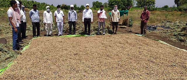 उत्पादन पूर्वी या भागातील शेतकरी घुंगरी नावाचे स्थानिक वाण व घरचेच बियाणे वापरायचे. त्याचे एकरी उत्पादन ७ ते ८ क्विंटल मिळायचे. तीन वर्षांतील प्रकल्पांतून हेच उत्पादन एकरी १२ ते १४ क्विंटलपर्यंत (वाळवलेले) मिळाले आहे. लावणीपासून ते काढणीपर्यंतचा खर्च १७ हजार रुपये आला. विक्री व्यवस्था प्रकल्पात सहभागी शेतकरी दीपक पाटील यांच्याकडून सुमारे १५ क्विंटल भुईमुगाची खरेदी पाल केव्हीकेने ५५०० रुपये प्रति क्विंटल दरात केली. बाजारात सध्या कोरोनाच्या संकटामुळे दर दबावात आहेत. ऑईल मिला बंद असल्याने उठाव कमी आहे. सध्या बाजारात क्विंटलला ४५०० रुपये दर आहे. काही शेतकऱ्यांनी गावपरिसरात ५५०० रुपये दराने तर काहींनी शिरपूर (जि.धुळे) येथील बाजारात विक्री केली. अपेक्षित दरांसाठी माचला व लोणी येथील काही शेतकऱ्यांनी साठवणूकही केली आहे. कोरोनाचे संकट कमी होण्याची त्यांना प्रतीक्षा आहे. प्रतिक्रिया दोन एकरांत भुईमूग लागवड केली होती. एकात्मिक तंत्रज्ञान आत्मसात केल्याचा व तुषार सिंचनाचा मोठा लाभ झाला. जैविक कीडनाशकांमुळे एकरी तीन ते चार हजार रुपयांचा खर्च वाचला. उत्पादन एकरी १४ क्विंटल (कोरडी शेंग) मिळाले. बाजारात सध्या ४५०० ते ५००० रुपये प्रति क्विंटल दर सुरू आहेत. कृषी विज्ञान केंद्र कोरोनाचे संकट दूर झाले की हमीभावाने म्हणजे ५२०० रुपये दराने खरेदी करणार आहे. निव्वळ उत्पन्न एकरी किमान ४५ हजार रुपये मिळेल अशी अपेक्षा आहे. - पंकज पाटील- ७०२०६०३७९८, माचला मी दीड एकरांत भुईमूग घेतला होता. एकरी सुमारे १४ हजार रुपये खर्च आला. कोरड्या शेंगेचे उत्पादन एकरी १७ ते १८ क्विंटलपर्यंत मिळाले. विक्रीनंतर एकरी किमान ४० हजार रुपये नफा मिळणे अपेक्षित आहे. - दीपक पाटील, माचला शेतकऱ्यांना फुले भारती हा दर्जेदार वाण या निमित्ताने मिळाला आहे. त्याचबरोबर खतांचा संतुलित वापर व एकूणच व्यवस्थापन यामुळे भुईमुगाचे उल्लेखनीय उत्पादन लोणी, माचला भागात होऊ शकले. यामुळे तेलबियांचे क्षेत्र वाढण्यास चालना मिळेल. - महेश महाजन, ९९७०६६१५४६ विषय विशेषज्ज्ञ, केव्हीके, पाल