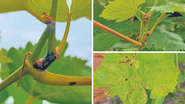 -बुरशीजन्य करपा रोगामुळे द्राक्षाच्या पानावर बारीक काळसर गोलाकार ठिपके पडतात.