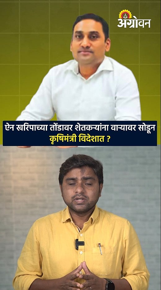 ताज्या कृषी घडामोडींसाठी फेसबुक, ट्विटर, इन्स्टाग्राम , टेलिग्रामवर आणि व्हॉट्सॲप आम्हाला फॉलो करा. तसेच, ॲग्रोवनच्या यूट्यूब चॅनेलला आजच सबस्क्राइब करा.
