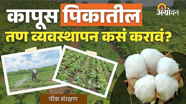 cotton crop management: वाढलेले तणं पाण्याबरोबरच जमिनीतील अन्नद्रव्ये, प्रकाश आणि जागेसाठी कापसाच्या रोपांशी स्पर्धा करतात. परिणामी, पिकाची वाढ थांबते आणि उत्पादनात मोठी घट दिसून येते. संशोधनानुसार तणांमुळे उत्पादनात ४० ते ८५ टक्क्यांपर्यंत घट होऊ शकते. कापूस हे दीर्घकालीन पीक असल्यामुळे सुरुवातीच्या वाढीच्या टप्प्यावर योग्य आंतरमशागत आणि तण नियंत्रण आवश्यक ठरते. पेरणीनंतरची सुरुवातीच्या ७० दिवसांचा कालावधी तण व्यवस्थापनासाठी अत्यंत निर्णायक मानला जातो. या कालावधीत तण नियंत्रण न झाल्यास उत्पादनावर प्रतिकूल परिणाम होतो.