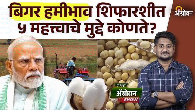 केंद्र सरकारने बुधवारी (ता. २८) १४ खरीप पिकांचे हमीभाव जाहीर केले. हे दर कृषी किंमत व मूल्य आयोगाच्या शिफारशीनुसार ए२ + एफएल सूत्रावर आधारित आहेत. मात्र, हमीभावाव्यतिरिक्त आयोगाने काही अन्य शिफारशी देखील केल्या आहेत. या शिफारशींना "नॉन-रिकमेंडेशन" असे म्हटले जाते, मग यामध्ये जीएसटी, खाद्यतेल आयात, कडधान्य आयात आणि हमीभाव खरेदीबाबत काय शिफारशी केल्या आहेत? याविषयीची संपूर्ण माहिती जाणून घेण्यासाठी वरील व्हिडिओ संपूर्ण पहा.
