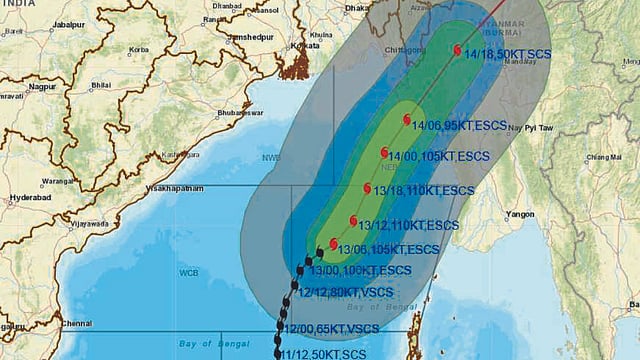अतितीव्र चक्रीवादळ आज (ता. १४) दुपारपर्यंत बांगलादेशाच्या कॉक्स बाजार आणि म्यानमारच्या 'क्याउक्प्यू' दरम्यान सिटवे जवळ किनारपट्टीला धडकण्याची शक्यता आहे. चक्रीवादळ किनारपट्टीलगत येताच या भागात प्रभावामुळे ताशी १७० ते २०० किलोमीटर वेगाने वारे वाहण्याची शक्यता आहे.