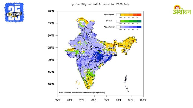 १९७१ ते २०२० च्या आकडेवारीनुसार जुलै महिन्यात संपूर्ण देशात दीर्घकालीन सरासरीच्या २८०.४ मिमी पाऊस पडतो. यंदा जुलै महिन्यात देशाच्या बहुतांशी भागात सरासरीपेक्षा अधिक पावसाची शक्यता अधिक आहे. तर ईशान्य भारतातील राज्ये, पूर्व भारत, दक्षिण द्वीपकल्प आणि वायव्य भारताच्या काही भागात सरासरीपेक्षा कमी पावसाची शक्यता अधिक असल्याचं हवामान विभागानं सांगितलं आहे.