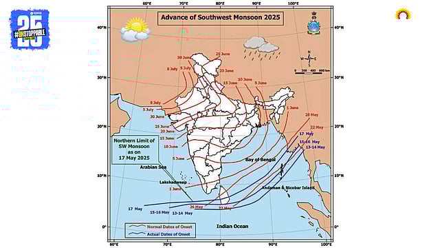 यंदा सर्वसाधारण वेळेच्या तब्बल पाच दिवस आधीच १३ मे रोजी मॉन्सून दक्षिण बंगालचा उपसागर, निकोबार बेटे आणि दक्षिण अंदमान समुद्रात मॉन्सून दाखल झाला. त्यानंतर मॉन्सूनची वाटचाल सुरूच असून, गुरुवारी (ता. १५) मॉन्सूनने दक्षिण अरबी समुद्रासह मालदीव आणि भारत आणि श्रीलंकेच्या दरम्यानचा कोमोरिन भाग व श्रीलंकेच्या दक्षिण किनारपट्टीपर्यंत मॉन्सूनने प्रगती केली होती.