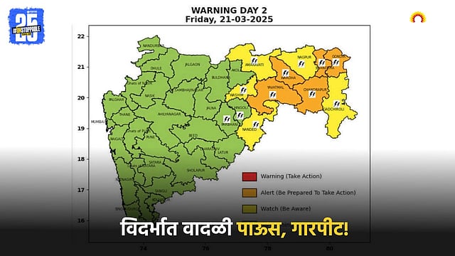 वादळी पाऊस, गारपिटीचा इशारा (ऑरेंज अलर्ट) : भंडारा, गोंदिया, चंद्रपूर, वर्धा, यवतमाळ.
